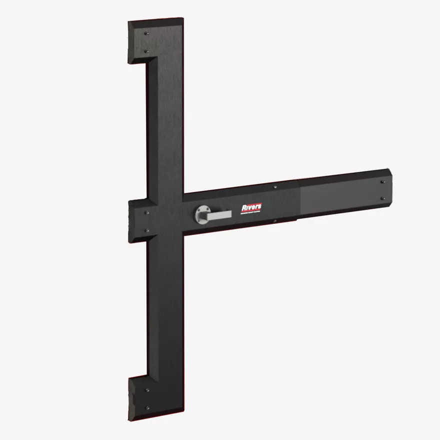 Designed for high security enviornment and fire doors, a two point horizontal self-latching locking system with multiple configurationsRivers Security Model D Two-point Horizontal Self-latching Lock