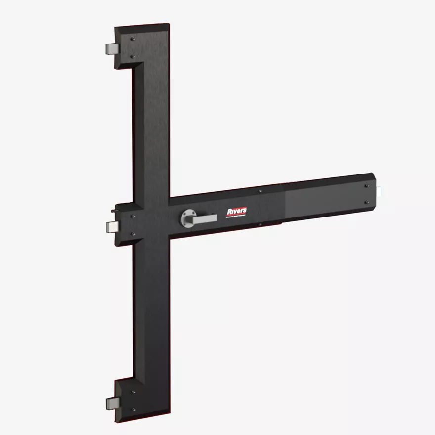 Designed for high security enviornment and fire doors, a two point vertical self-latching locking system with multiple configurationsRivers Security Model F Four-point Lock