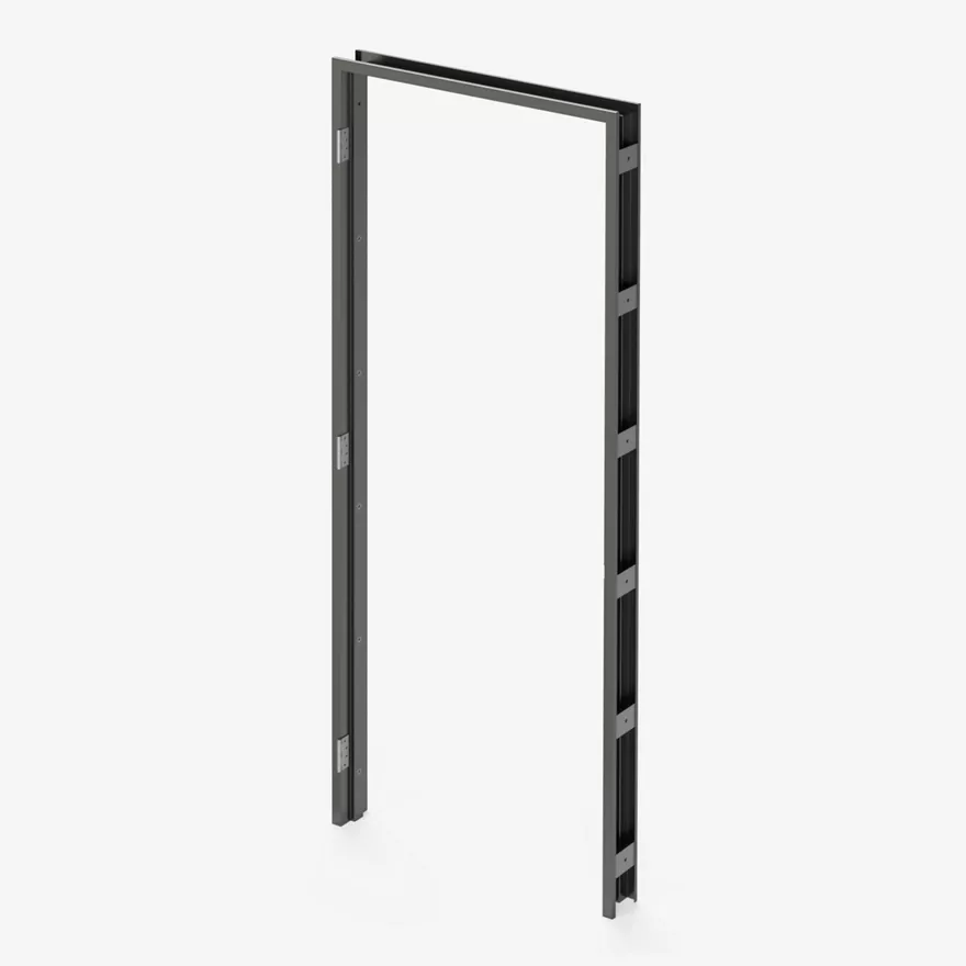 Split double rebate frame combines a double rebate profile with a two-part frame construction that fits from both sides of the wall opening.Flange Fit Metal Door Frame - Split Frame